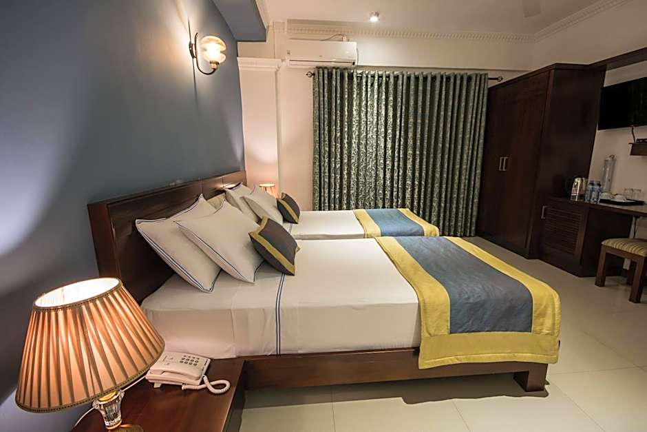 The twin room has a private bathroom, air conditioning, a tea and coffee maker, as well as a seating area with a flat-screen TV. The twin room features a wardrobe, a safe deposit box, a tiled floor, a TV, as well as city views. The unit has 2 beds.